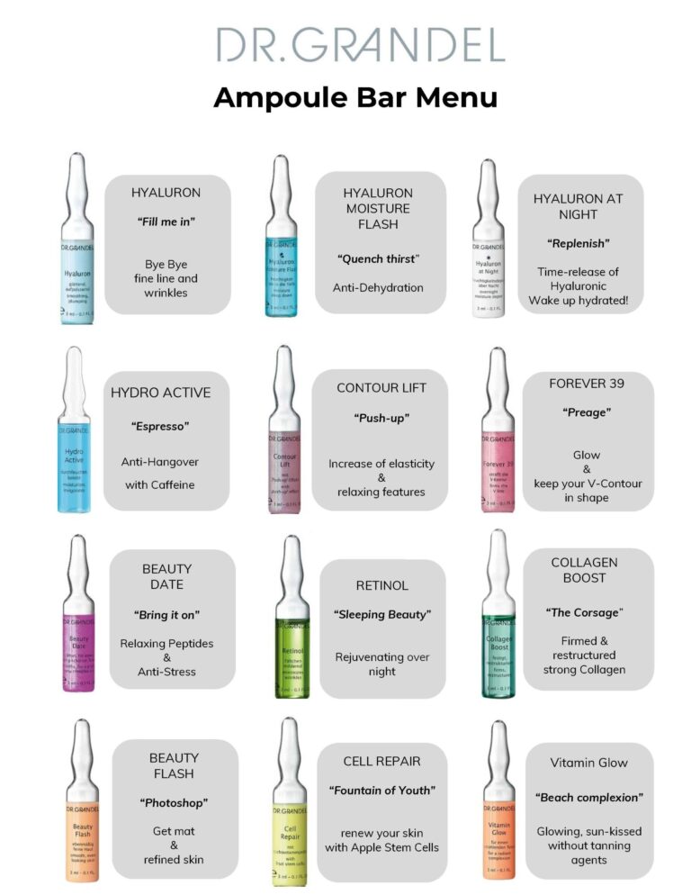 Need a quick overview? See below the Ampoule Bar Menu.